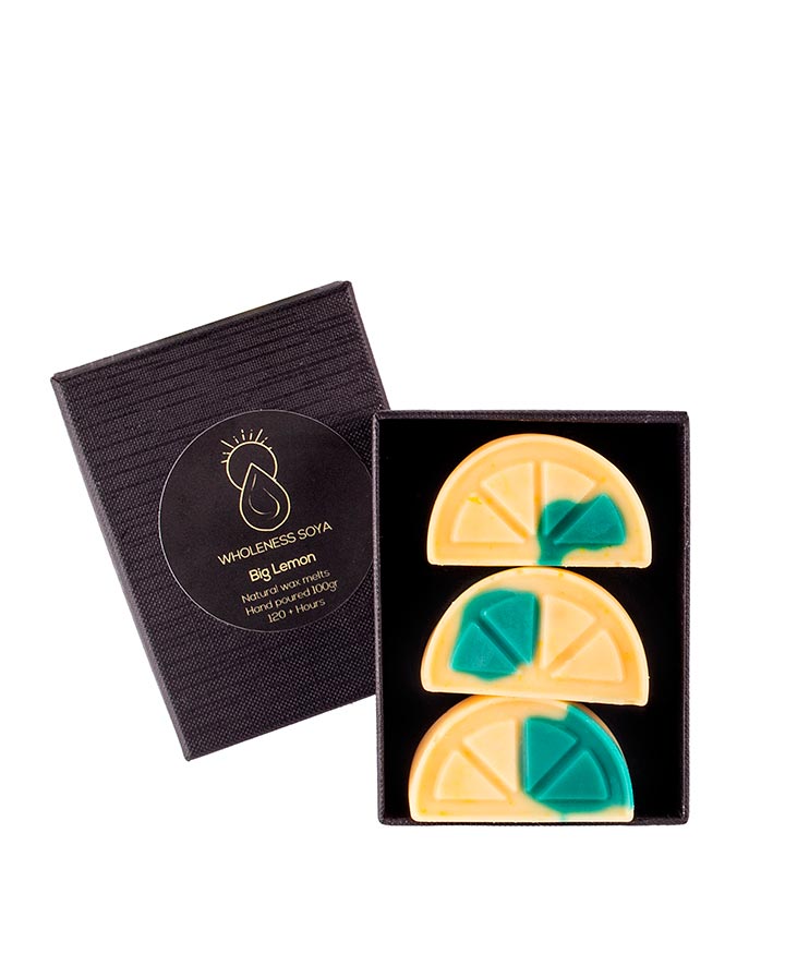 Ένα μεγάλο, φρουτώδες statement για το σπίτι σου. Το Big Lemon συνδυάζει ζωντανά αρώματα λεμονιού με γλυκές, λουλουδάτες νότες σε ένα κουτί wax melt, ιδανικό για όσους θέλουν διαφορετική εμπειρία από τα παραδοσιακά wax melts. Η έντονη, δυνατή διάχυση γεμίζει κάθε γωνιά με φρεσκάδα και χαρά, ενώ η μεγάλη επιφάνεια του σχήματος κάνει την αρωματική εμπειρία ακόμα πιο οπτικά εντυπωσιακή.